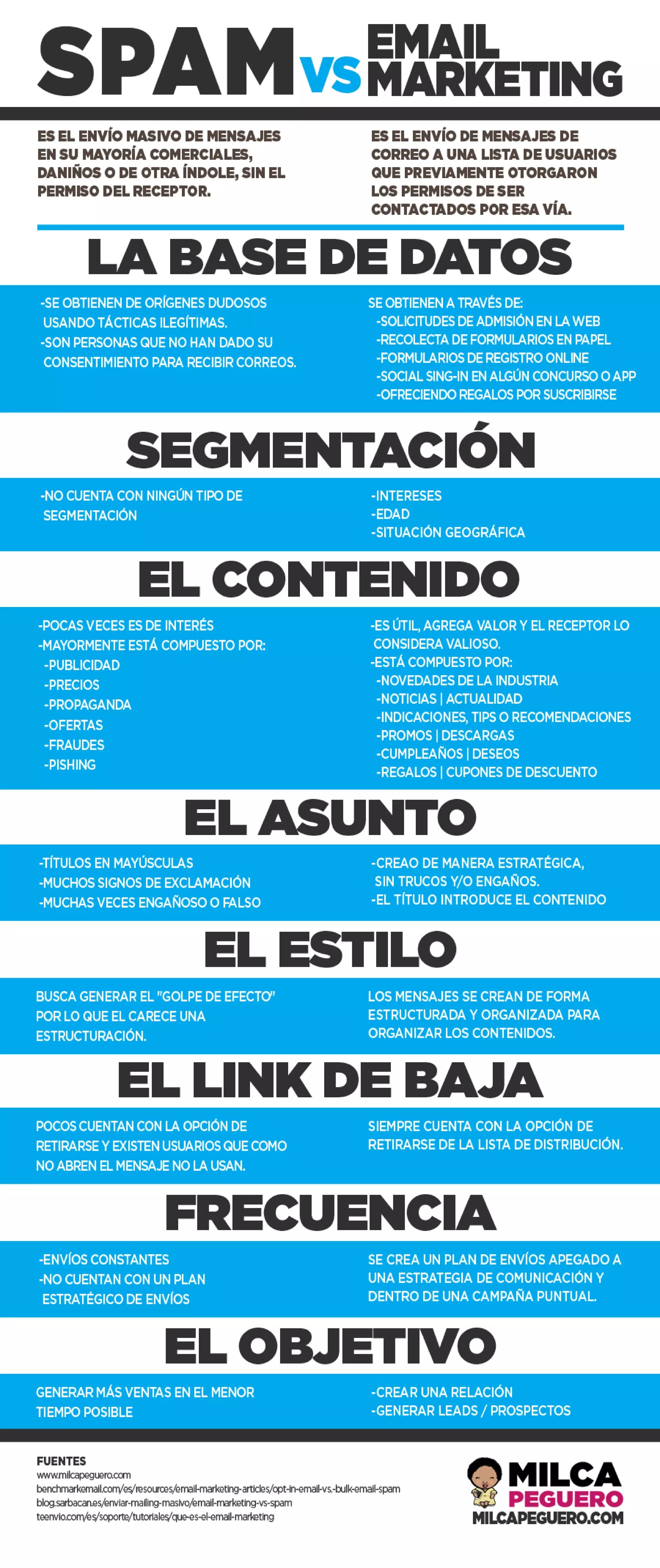 La principal diferencia radica en la autorización. Mientras que el email marketing se envía a una audiencia que ha consentido y expresado su interés en recibir esa información, el spam se envía sin el consentimiento previo del destinatario. El email marketing se fundamenta en la construcción de relaciones y la entrega de valor, mientras que el spam se centra en enviar mensajes a un gran número de destinatarios sin tener en cuenta la relevancia o el permiso de los mismos.