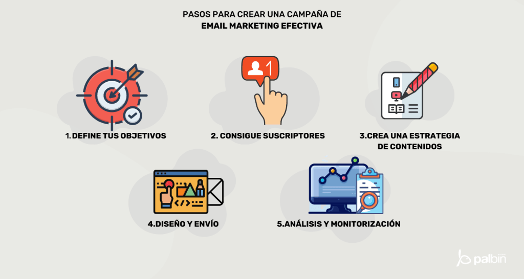 Cuando nos sumergimos en una estrategia de email marketing, especialmente si tiene un enfoque comercial, es clave seguir los siguientes pasos:
