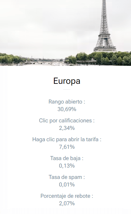 - Tasa de rebote (correos que no llegaron a los destinatarios).